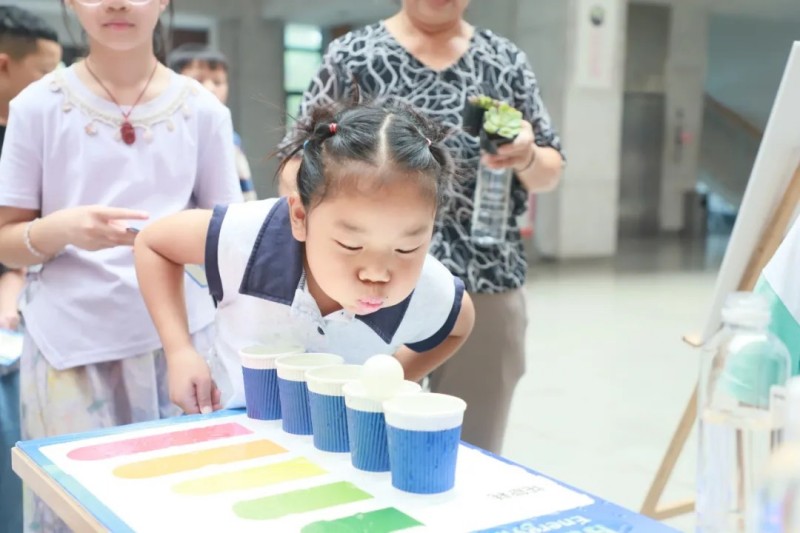 銅仁(上市主體)產業基地行政樓大廳變身歡樂海洋,“碳匯小能手”套圈贏綠植、“充電向前沖”模擬電子移動學習電流知識、“資源回收大考驗”投壺強化垃圾分類、“能耗大作戰”吹乒乓球展示節能概念,“自由涂鴉區”將廢棄物品重鑄為藝術品,每個游戲都將新能源知識巧妙融入,讓孩子們邊玩邊學。